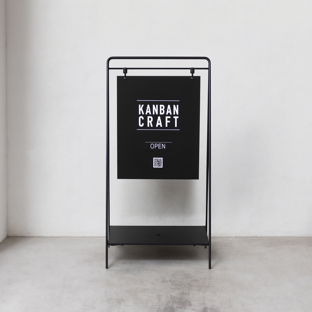 フラットサインスタンド — 面で伝える、屋外対応のスタンド看板 —