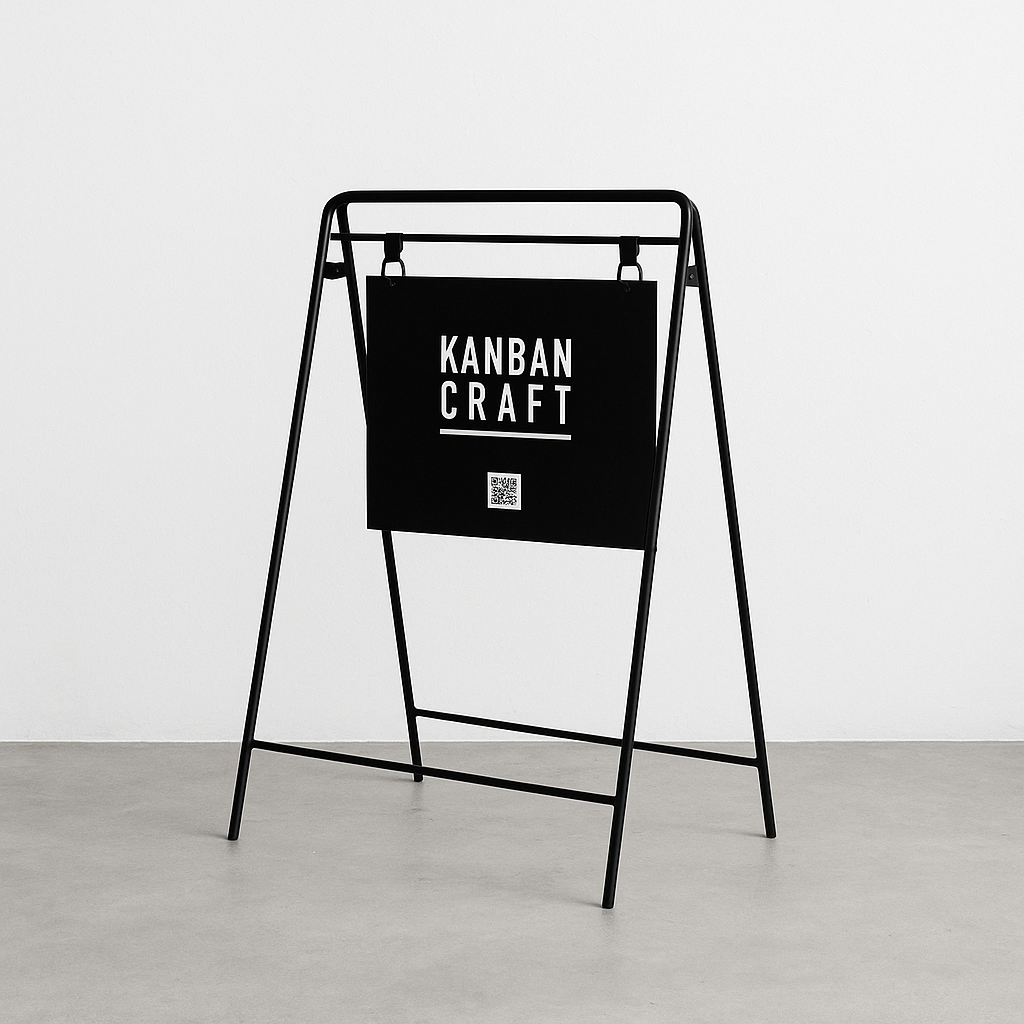 フレーム全体は極限までシンプルに仕上げ、看板プレートの情報を引き立てます。