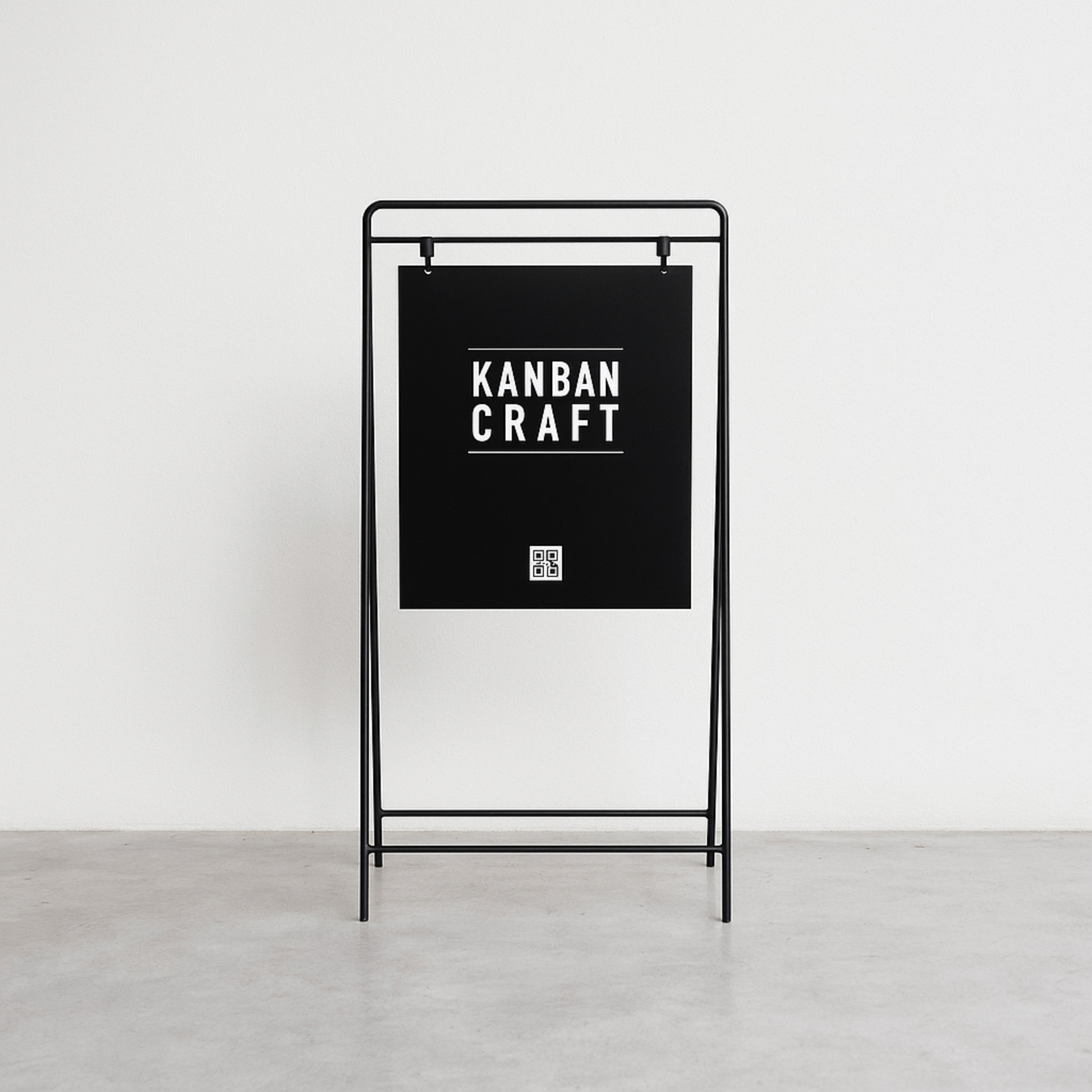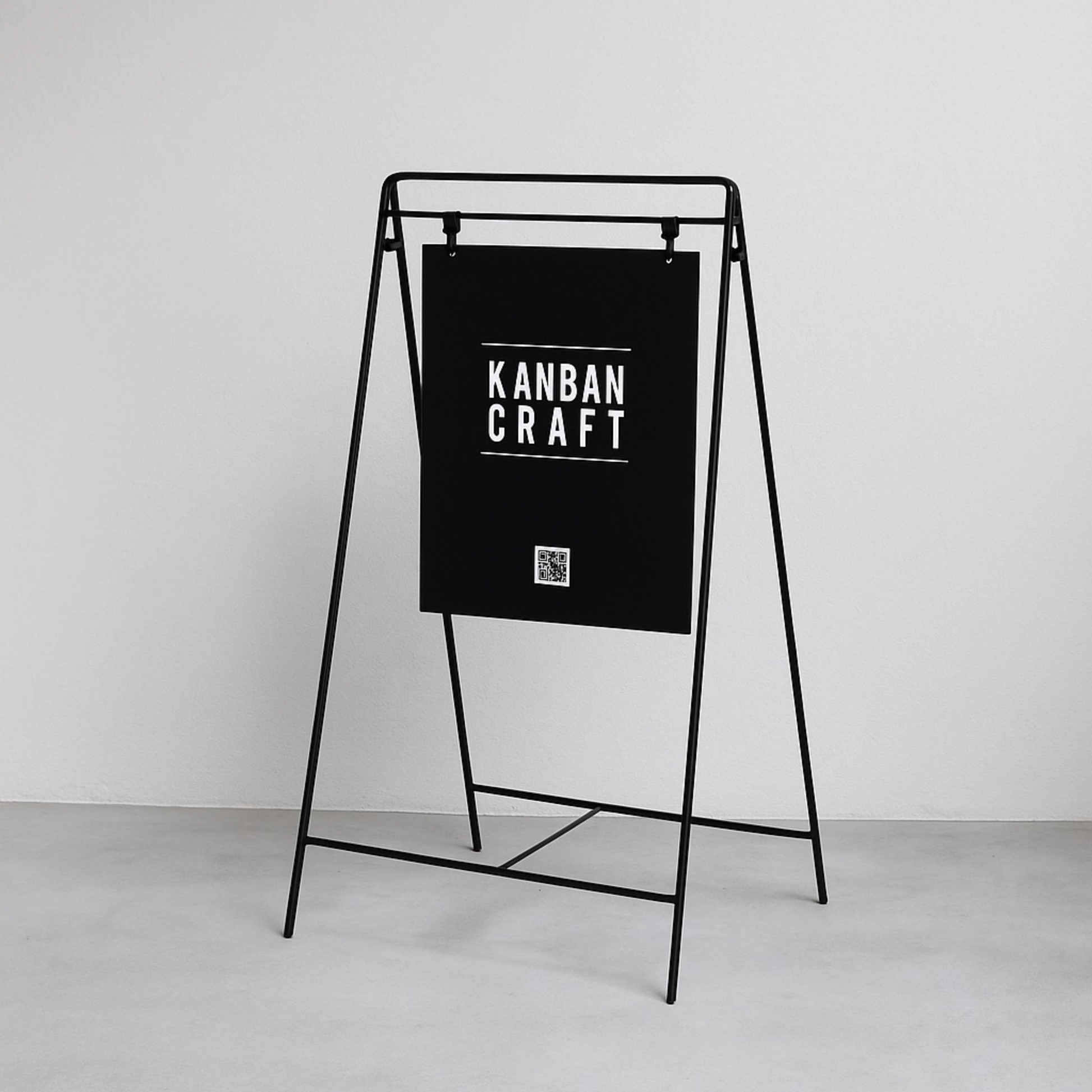 フレーム全体は極限までシンプルに仕上げ、看板プレートの情報を引き立てます。